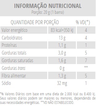 - Ingredientes: Cereais, Recheio Sabor Goiaba, Açúcar, Gordura Vegetal, Fibra de Trigo, Farinha de Linhaça, Gordura de Palma, Mel , Fibra de Trigo, Fermento Químico, Antioxidante e Aromatizante.