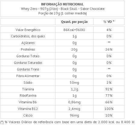 - Ingredientes: WPI do Soro de Leite, Cloridrato de Tiamina, Riboflavina, Cloridrato de Piridoxina, Metilcobalamina, Aromas Naturais e Artificiais, Estabilizadores e Emulsificantes.